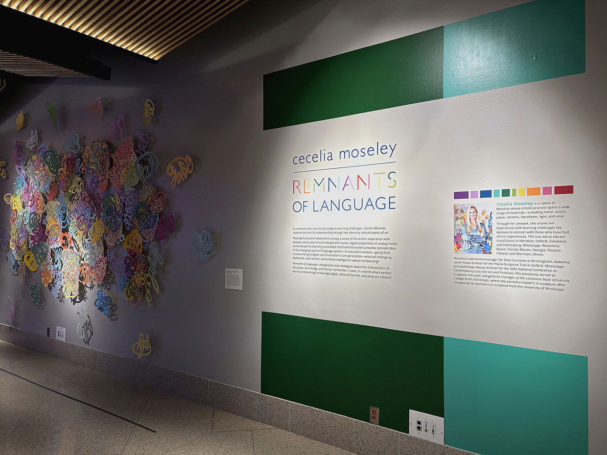 Lyrical steel curves, splashes of bright color, and provocative questions about barriers to understanding came together in Cecelia Moseley: Remnants of Language. Moseley, a Meridian native, transformed the MAX’s galleries into an immersive, deeply personal experience. Oversized metal sculptures, prints, and a vivid acrylic installation invited visitors to consider what remains—and what is lost—when digital communication replaces handwriting. The artist posed powerful questions: As we move forward, what traces remain? How are we adapting? What parts of us are changing?